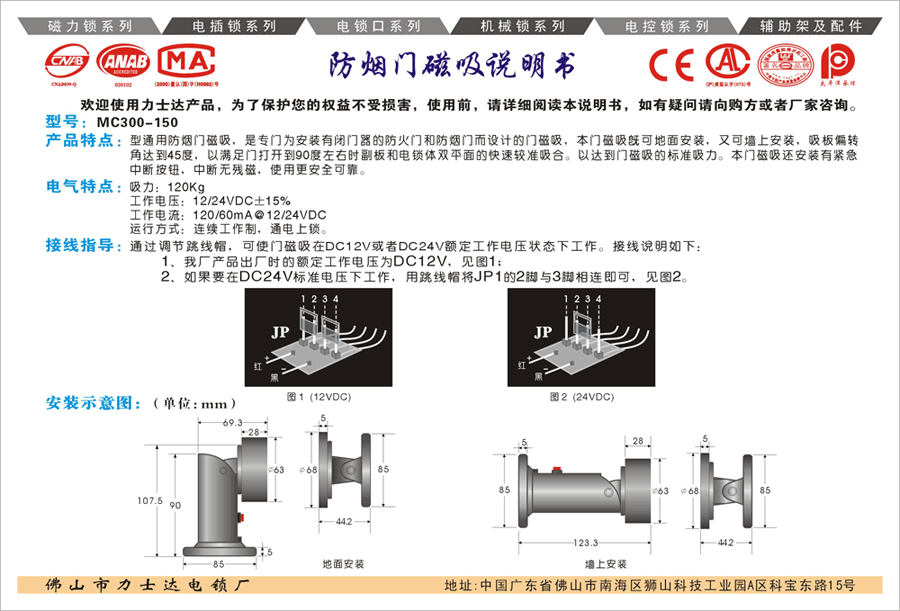 MC电磁门吸是按照《消防》标准自主设计开发,拥有实用新型、外观等。