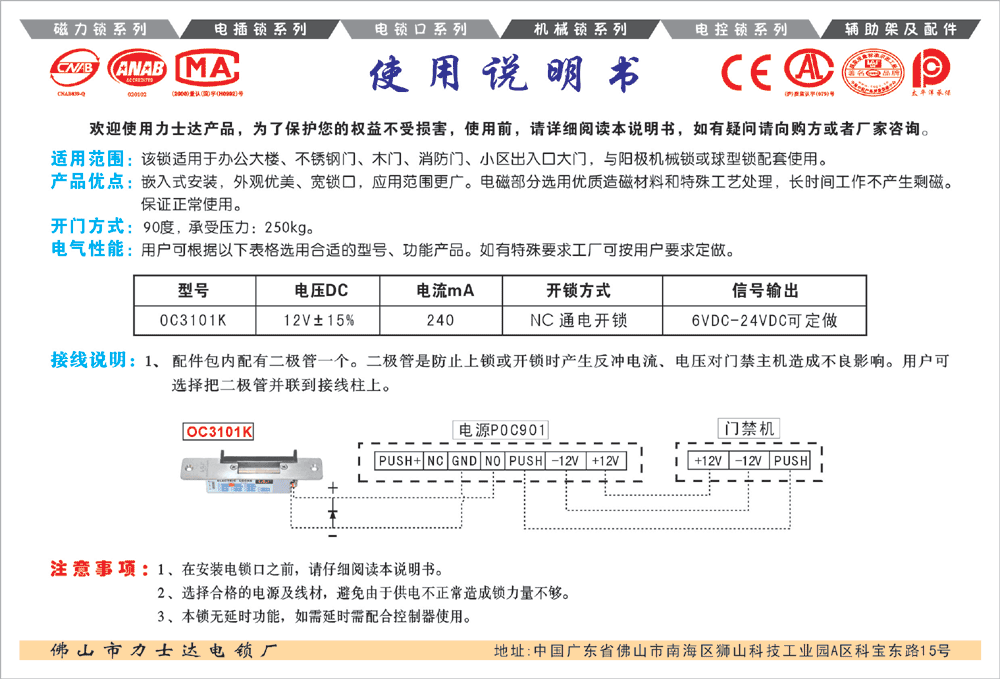 OC电锁口是按照《电锁口》标准自主设计开发,拥有实用新型、外观等