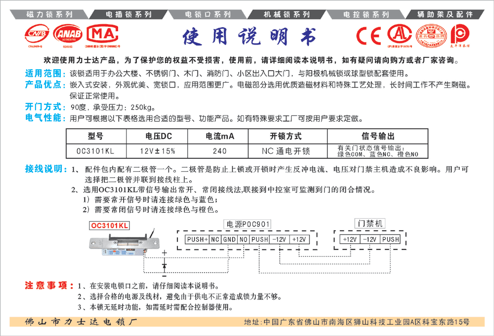 OC电锁口是按照《电锁口》标准自主设计开发,拥有实用新型、外观等