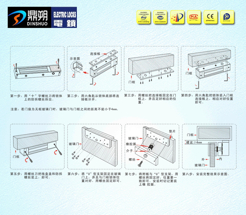 明装型;无框玻璃门磁力锁支架