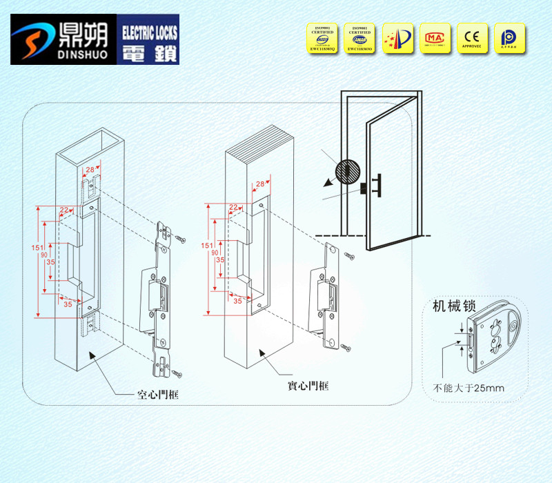 适用范围:适用于内推90度的金属门,配套单锁舌机械锁使用