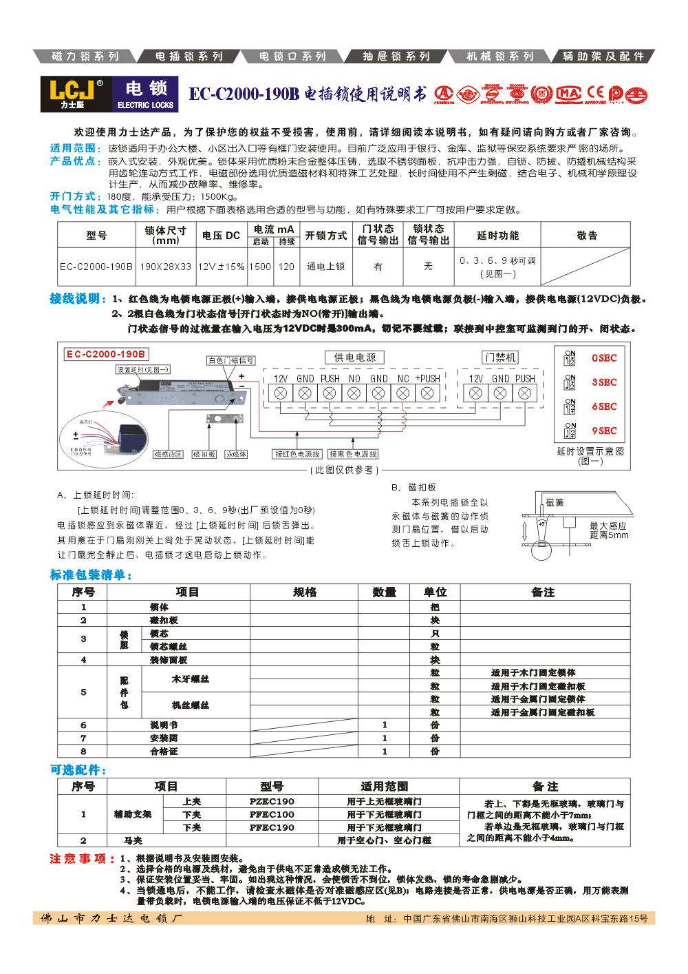 通电、磁感应上锁,实现智能大厦、办公大厦、小区等出口进出权限管理 带上锁延时功能 门状态NO(常开)信号输出 带指示灯,显示电插锁上锁工作状态
